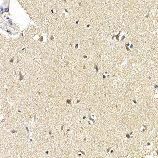 Immunohistochemistry of paraffin-embedded human brain using [KO Validated] LC3B Rabbit mAb (A19665) at dilution of 1:100(40x lens). Perform high pressure antigen retrieval with 10 mM citrate buffer pH 6.0 before commencing with IHC staining protocol.