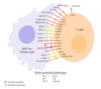Immune checkpoint (IC) proteins are key molecules that regulate the immune system by maintaining immune tolerance, determining the timing of the immune response, and controlling the intensity of the immune stress. Tumor cells exploit the immune checkpoint pathway as a major mechanism for immune escape, particularly by evading responses from immune cells that are capable of recognizing tumor-specific antigens presented by T cells[1]. Therefore, agonists of co-stimulatory signaling or antagonists of inhibitory signaling represent promising approaches for cancer treatment. Classical immune checkpoint proteins include co-inhibitory receptors that inhibit T cell function (CTLA-4, PD-1, TIGIT, LAG-3) and co-stimulatory receptors that stimulate T cell function (GITR, 4-1BB, OX40, CD40).