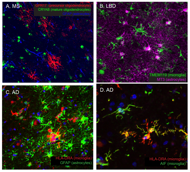 | MARKERS FOR NEURODEGENERATION | MARKERS FOR OLIGODENDROCYTES | MARKERS FOR NEUROINFLAMMATION |