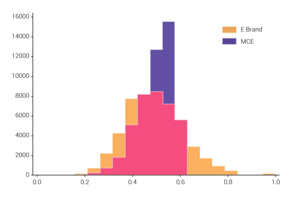 Figure 1: Comparison of tanimoto coefficient between E brand and MCE: ranges from 0 to +1 (where +1 is the highest similarity)