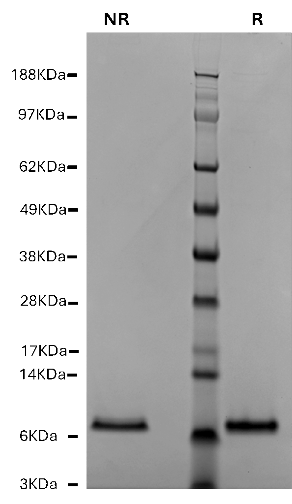 Human platelet factor-4 (Catalog # HPF4-0180) is a low molecular weight, heparin-binding protein found in platelet alpha-granules where its concentration ranges from 11.2-12.4 µg per 109 platelets (3). Functional platelet factor-4 is a homotetramer and neutralizes the anticoagulant activity of heparin in plasma. Human platelet factor-4 is highly immunogenic and plays a central role in heparin-induced thrombocytopenia.