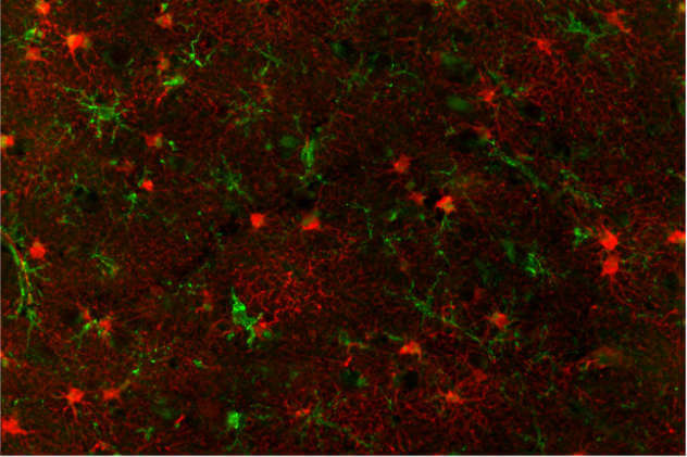 Microglia cells are critical cellular mediators of neuroinflammatory processes. As the resident macrophage cells, they act as the first and main form of active immune defense in the CNS. Activation of microglia is a hallmark of brain pathology. The chronic activation of microglia may cause neuronal damage through the release of potentially cytotoxic molecules such as proinflammatory cytokines, reactive oxygen intermediates, proteinases, and complement proteins. For example, in the pathogenesis of Alzheimer´s disease, activated microglia participates in amyloid Aβ-plaques formation and the associated pathology. Antibodies targeting microglia cells include the Anti-AIF, Anti-CD68, Anti-HLA-DRA, Anti-ITGAM (CD11b), Anti-TMEM119, AIF1/Iba1-2, Anti-P2RY12, and Anti-PTPRC.