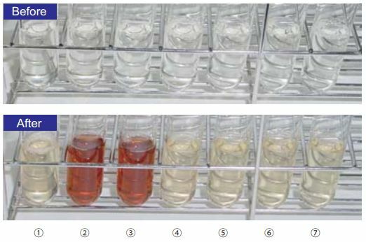 Because of frequent occurrence of fruit juice deterioration incidents in Europe and other regions, Japan Fruit Juice Association developed and publicized a unified test method for TAB in March 2003 [4]. To allow easy performance of this test, we developed a kit that differentiates A. acidoterrestris in terms of productivity of guaiacol, which causes off-flavor.