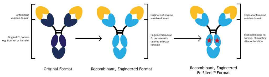 The critical role of immunotherapy research antibodies in advancing cancer research and treatments is clear: the right tools can open a wide range of experimental possibilities. With technology like Fc Silent™ mutations to abrogate Fc region binding, species swapping for optimized in vivo performance, and the generation of bispecific antibodies, the wealth of problem-solving capabilities offered by recombinant antibodies is endless. With access to sophisticated tools like these, the field continues to make strides towards more effective and personalized immunotherapeutic solutions. If your unique research needs have yet to be met by the off-the-shelf antibodies that we have available, we offer custom services such as antibody engineering.