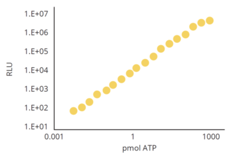 Adenosine triphosphate (ATP) is present in all living cells and plays a central role in energy balance. The intracellular concentration of ATP is tightly regulated and is maintained at a similar level in all cells. When a cell dies, the ATP is completely degraded; ATP levels therefore reflect the presence of any living cell. The bioluminescence-based assays are extremely sensitive; a standard luminometer can detect as little as 0.1 picomole of ATP.