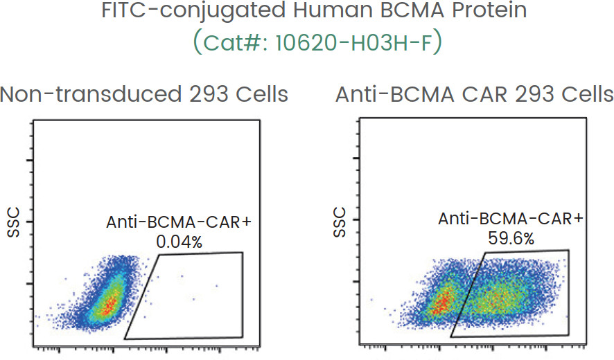 | 10620-H03H-F | BCMA | Human | HEK293 | His & hFc | FITC |